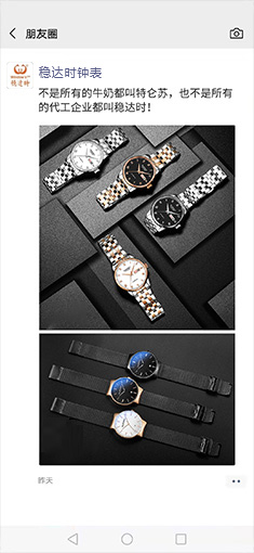 不同材質(zhì),不同工藝,不同質(zhì)量的原材,價格最后都不一樣;穩(wěn)達時每只表精細選材,原裝進口機芯品質(zhì)保證,先打樣后做貨、保障產(chǎn)品品質(zhì);我們始終堅信一分錢一分貨,從源頭把控產(chǎn)高品質(zhì),確保打磨出來的每一只表都是精品。 -